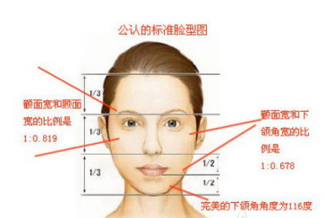国际上通用的面容“黄金分割”——1:0.678即是检验这一比例的标准。我们所通称的东方美人脸:鹅蛋脸和瓜子脸就与这两大标准十分贴近,因此这两种脸型又被称为标准脸型,一般来说,理想脸型的长宽比应为34:21,面部紧致、五官立体、线条流畅,无论从任何一角度看,都毫无破绽。