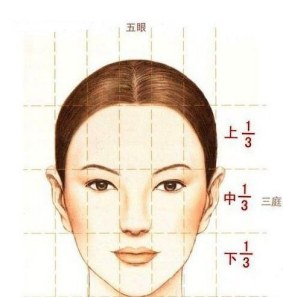 中国自古便总结的“三庭五眼”的美人脸标准。
